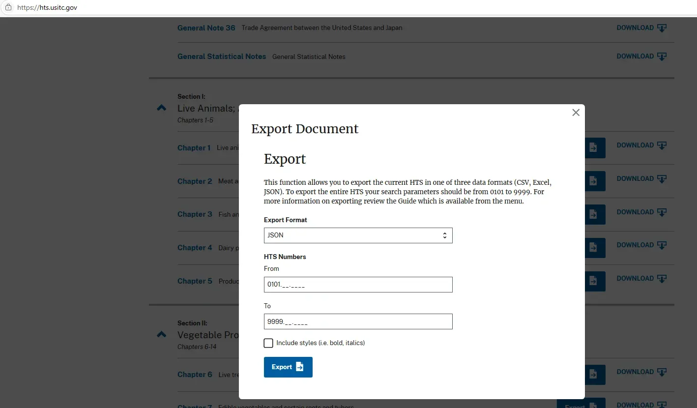1.1 Getting the Data from hts.usitc.gov